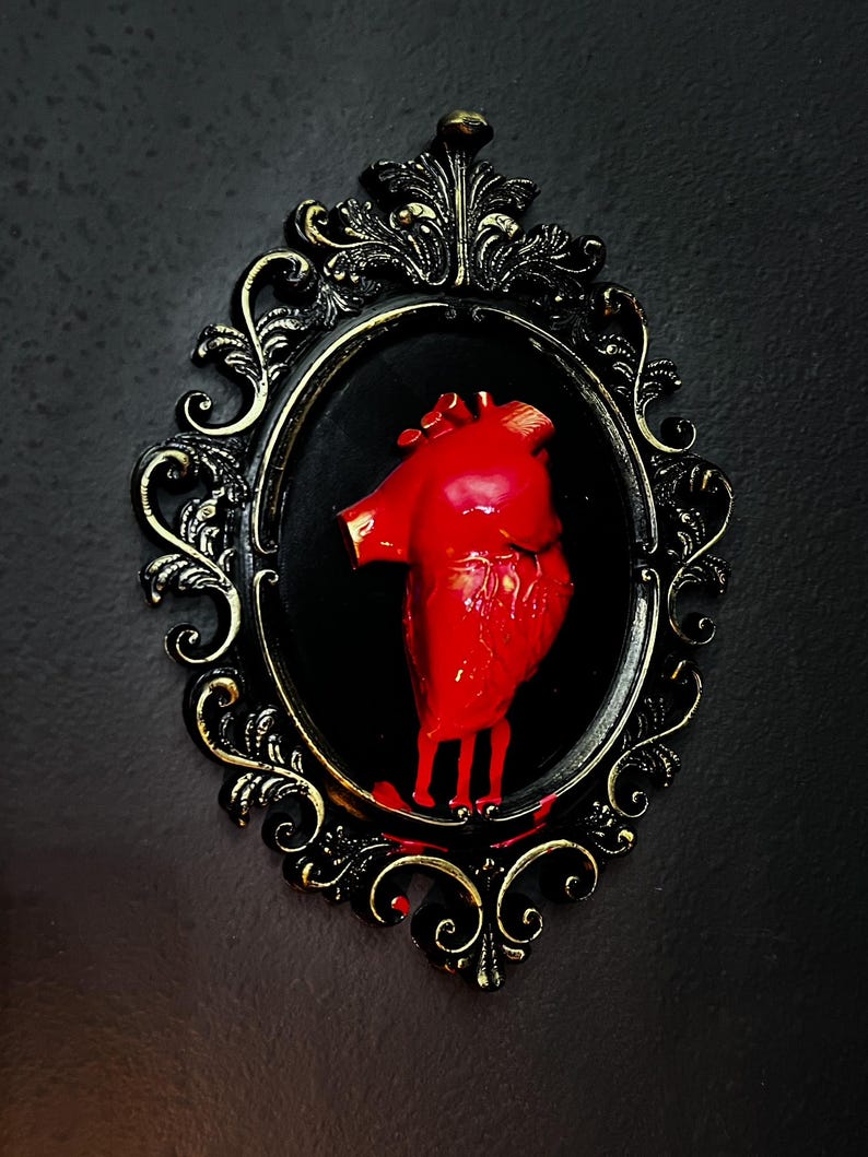 Add a spooky touch to your décor with this Gothic Victorian Macabre Solid Framed Bleeding Heart wall decor. Crafted from durable plastic, this heart decor is hand crafted, hand painted and perfect for any room in your home. The bleeding heart design will give your guests a creepy vibe. Whether you're a fan of Halloween or just love unique gothic style décor, this piece is sure to turn heads. Hang it in your living room, bedroom, or any other space to add a touch of macabre style or gift it as the perfect housewarming gift