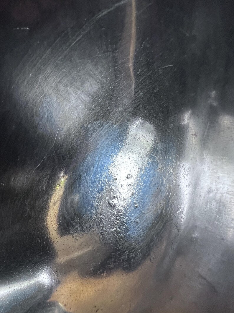 Used, some signs of wear, scratching and scuffing and minor dings in the bottom, but in great condition