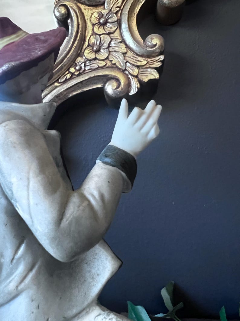Vintage Blue French Provincial Figure Bisque Ceramic Table Lamp