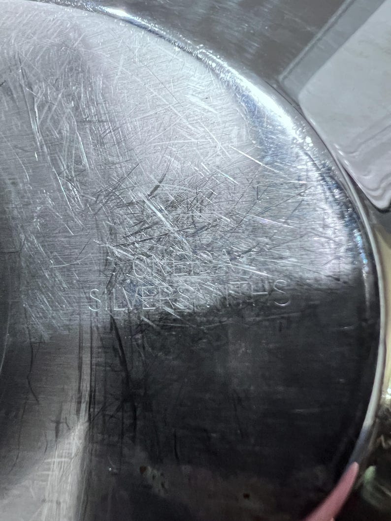 Oneida Silver plate gravy boat/bowl with attached plate.